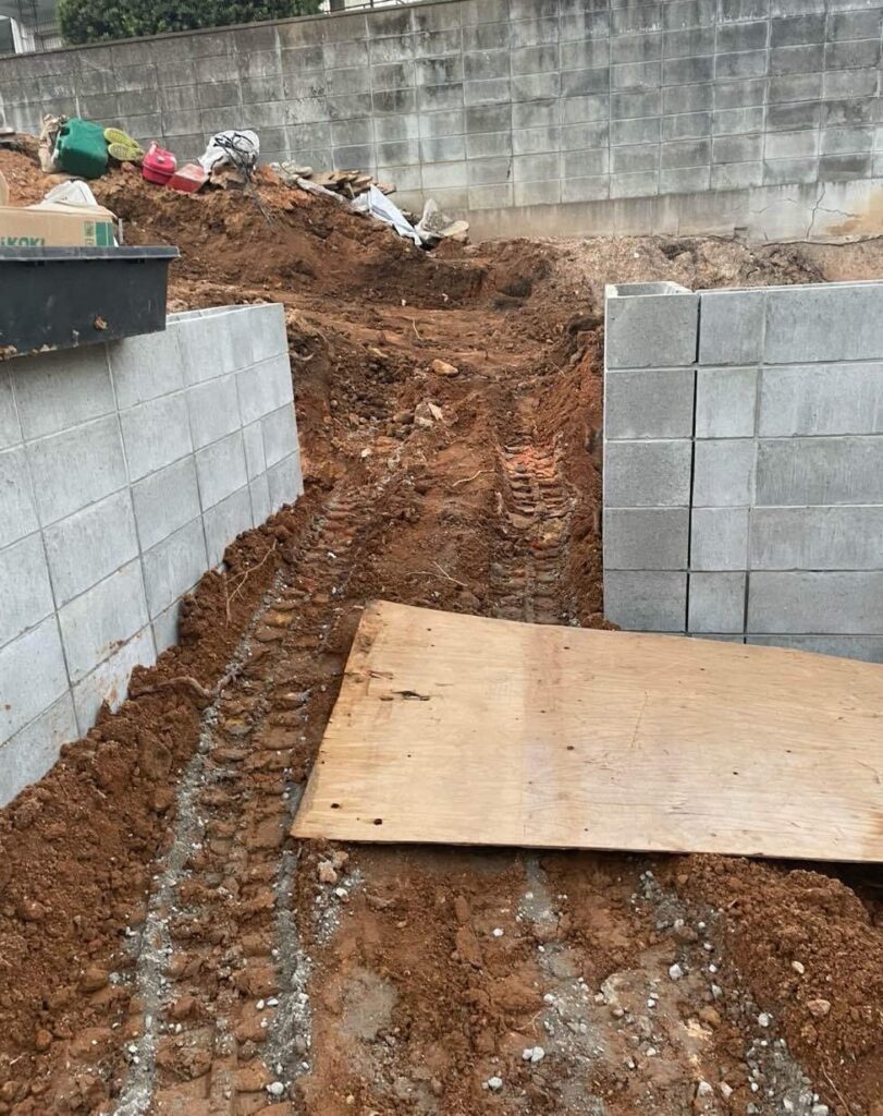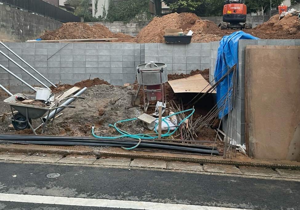 石垣を壊し、ブロックで強固な土台を作りました。