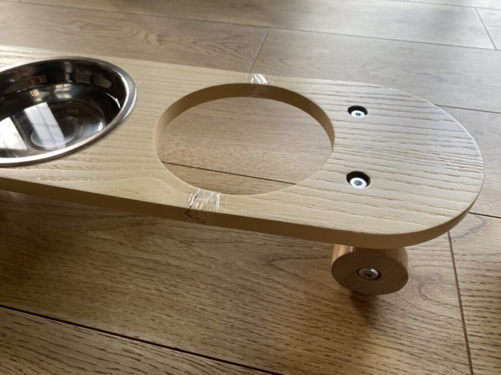 スケボーが土台になった、犬用の水飲みとエサいれの雑貨があり、可愛くて購入。