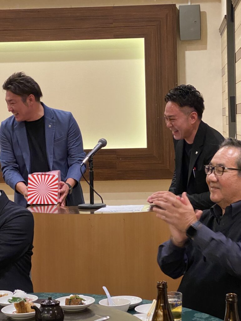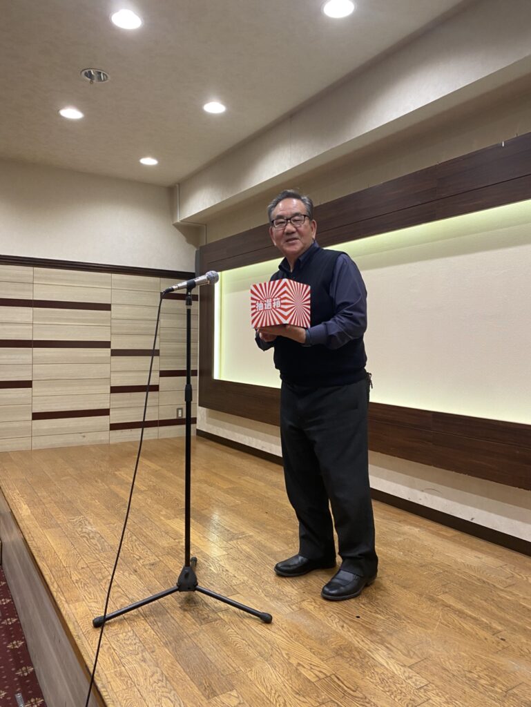 楽しいヤジも飛ばしてもらいながら、忘年会も終盤にさしかかるとお楽しみBOXが登場。
