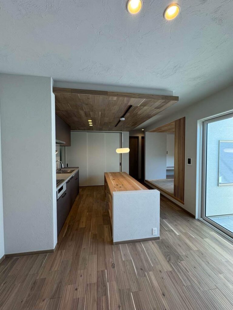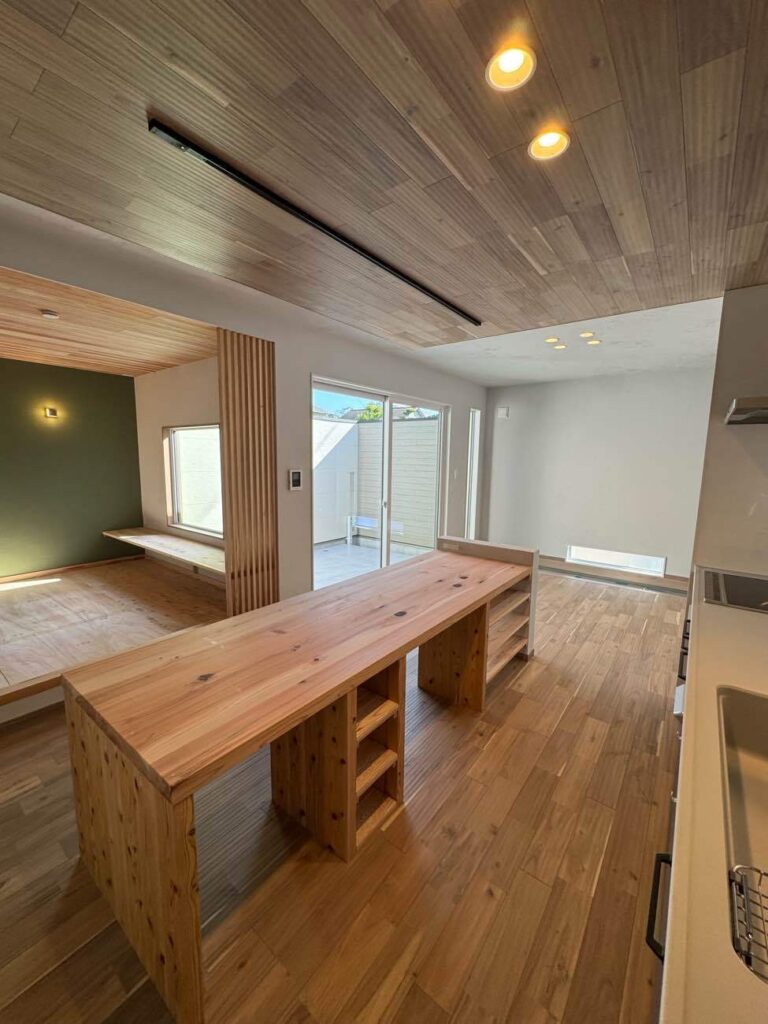 今週末に見学会を予定している平屋のお家ですが、素敵なキッチン・ダイニングが出来ていたので、チョットだけご紹介。