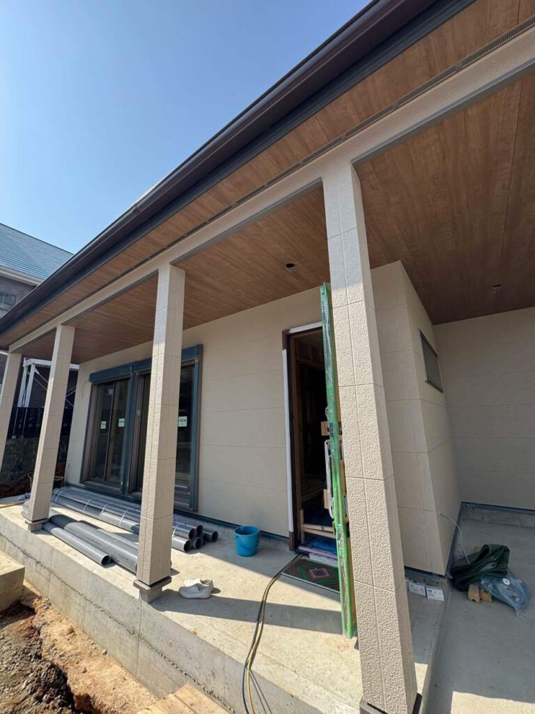 さて、M様邸の現場を覗くと外壁の足場もはずれていました!