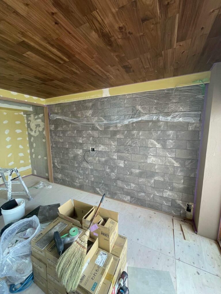 リビングのTV背面壁、アクセント壁が入りました。
