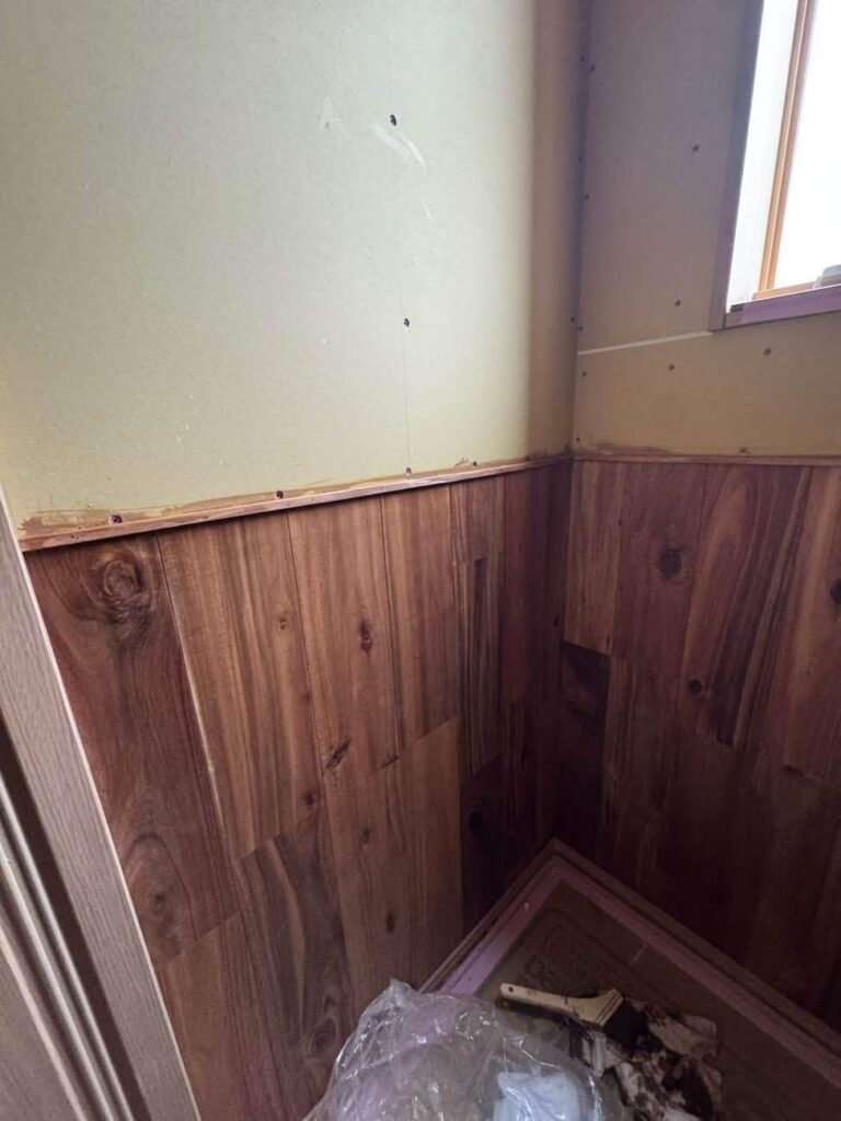 漆喰壁よりもふき取り等のお手入れがしやすいため、お手洗いは腰板をよく選択されるお施主様も。